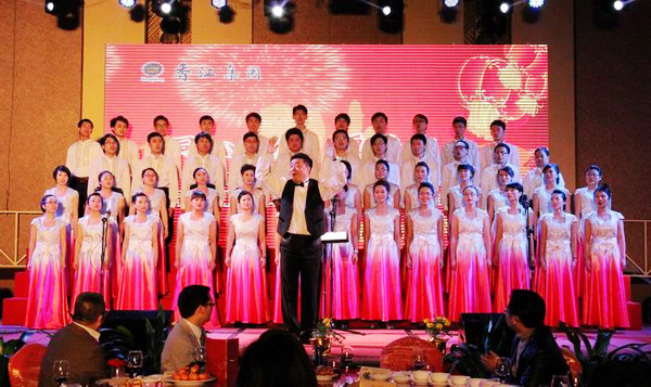 香江集團(tuán)文促會(huì)于今年組建了藝術(shù)團(tuán)并初見成效,力求創(chuàng)新思路,以員工喜聞樂見的形式促進(jìn)企業(yè)文化建設(shè)。藝術(shù)團(tuán)成員出色表現(xiàn)的背后,飽含著他們對(duì)香江的感情和成員互相之間兄弟姐妹般的情誼。文促會(huì)藝術(shù)團(tuán)歌伴舞節(jié)目《紅紅的日子》的精彩表現(xiàn)令人贊不絕口,大合唱節(jié)目更是將晚會(huì)氣氛推向高潮,各位高管與合唱團(tuán)齊唱《香江之歌》,《香江之歌》成為了香江人拼搏進(jìn)取的精神信仰。